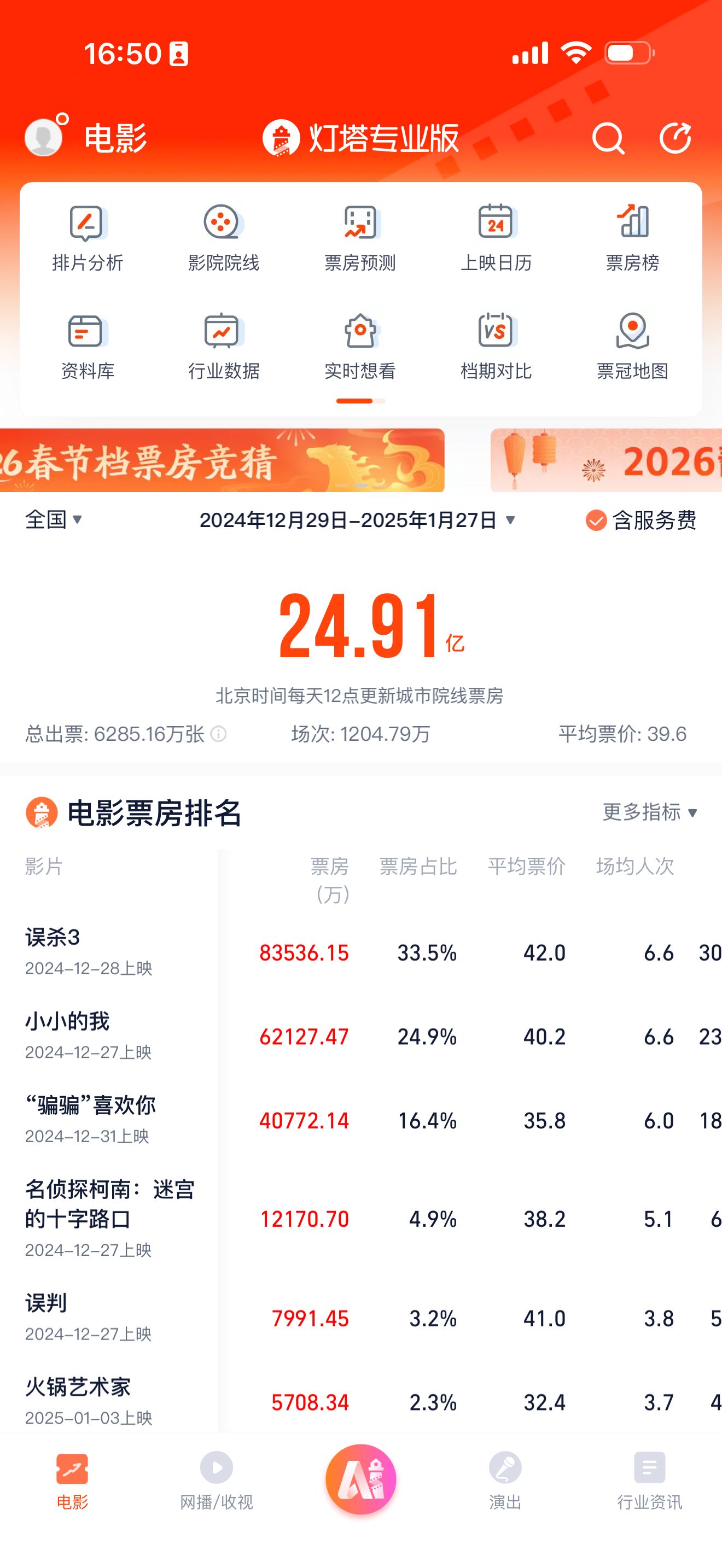 記者查詢燈塔專業(yè)版看到,2025年“春節(jié)檔”前的30天(2024年12月29日至2025年1月27日),全國電影市場(chǎng)票房收入為24.91億元;截至2024年底,全國銀幕總數(shù)約9.1萬塊,疊加影院端52%的分賬比例粗略計(jì)算,在2025年春節(jié)檔前“淡季”的一個(gè)月,我國一塊銀幕的日均收入約474元。