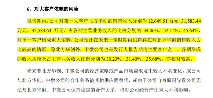 值得注意的是,托倫斯在報告期內(nèi)對前兩大客戶存在較大的依賴性。2023年至2025年各年度,托倫斯對第一大客戶北方華創(chuàng)的銷售收入占公司主營業(yè)務(wù)收入的44.06%、52.11%和45.64%,對第二大客戶中微公司的銷售收入占公司主營業(yè)務(wù)收入的30.23%、31.40%和35.68%。也就是說,托倫斯在2024年和2025年對前兩大客戶的銷售收入占比均超過了八成。