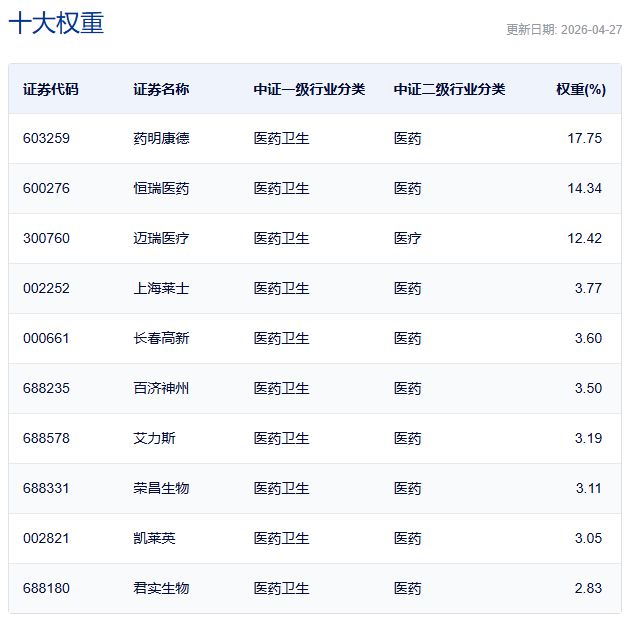 國(guó)證生物醫(yī)藥指數(shù)主要權(quán)重股