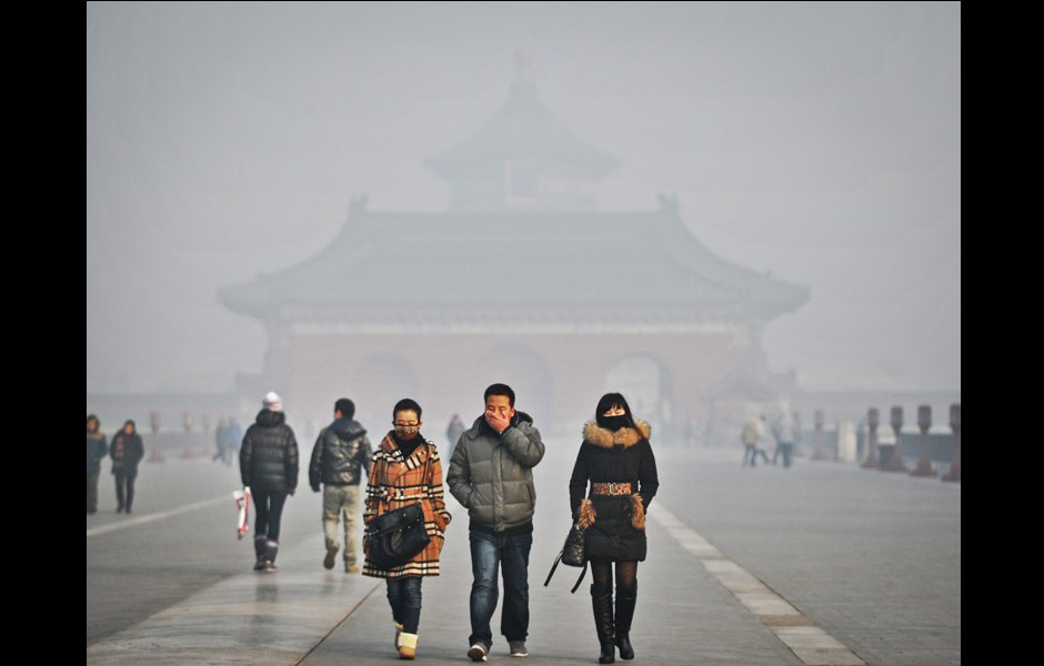 1月12日,北京持續(xù)霧霾天氣。當(dāng)日,北京PM2.5指數(shù)瀕臨“爆表”,空氣質(zhì)量持續(xù)六級(jí)嚴(yán)重污染。北京環(huán)境監(jiān)測(cè)中心專家表示,從污染形勢(shì)預(yù)報(bào)的分析結(jié)果看,此次影響北京市的重污染過(guò)程在下周一之前不會(huì)發(fā)生明顯改善。原標(biāo)題:中國(guó)遭遇最嚴(yán)重霧霾...